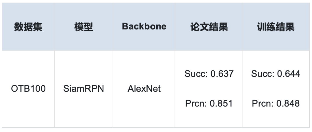 使用OTB100数据集,SiamRPN指标与paper公开指标对比如下: