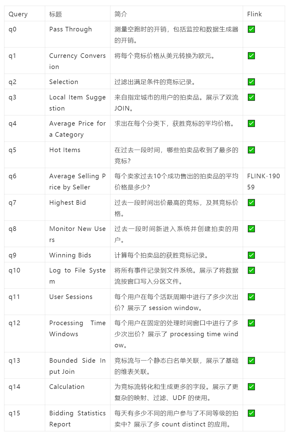 推动流计算 benchmark 的发展和标准化。 作为 Flink 引擎版本迭代之间的性能测试工具,甚至是日常回归工具,及时发现性能回退的问题。 在开发 Flink 性能优化的功能时,可以用来验证性能优化的效果。 部分公司可能会有 Flink 的内部版本,可以用作内部版本与开源版本之间的性能对比工具。