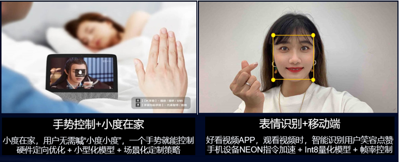 AI服务的计算环境发生了翻天覆地的变化,已逐渐从云端向移动端和IoT蔓延渗透。据统计,近几年AIoT的市场规模以40%以上的实际速度在增长,而且预期未来几年还保持着一个相当高的增长趋势。与此同时,也带来了前所未有的新型交互需求。比如,在智能屏音箱上,不方便语音的时候使用手势控制;看视频时,在耗电量微乎其微的情况下,可以通过表情识别,为你喜欢的视频自动点赞。