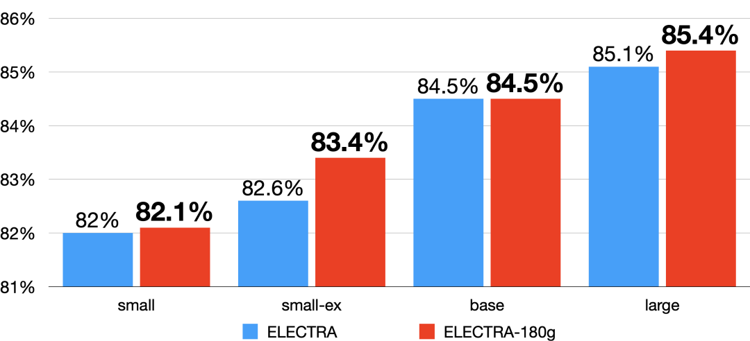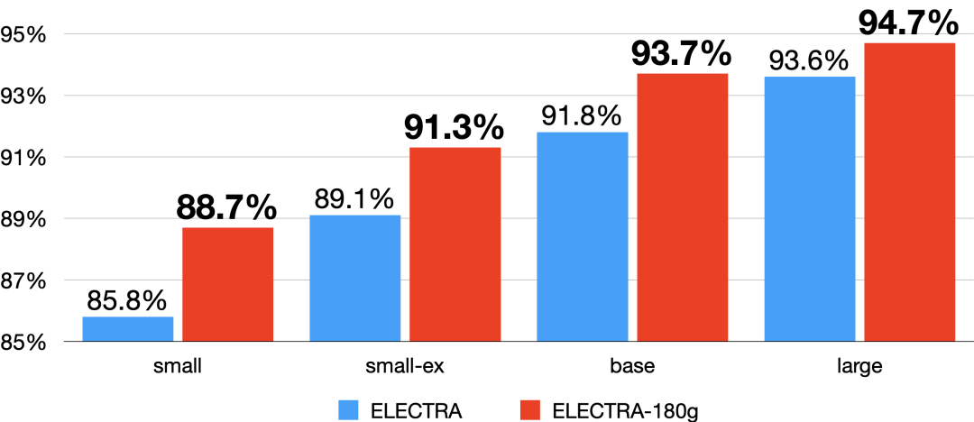 在今年3月, 哈工大讯飞联合实验室推出了中文ELECTRA预训练模型,并将相关资源进行开源,目前在GitHub上已获得580个star。本次更新中,我们将预训练语料从原有的约20G提升至180G,利用接近9倍大小的数据集。在阅读理解、自然语言推断、句对分类等中文自然语言处理任务中, ELECTRA-180G相比原版ELECTRA获得了显著性能提升。欢迎各位读者下载试用相关模型。