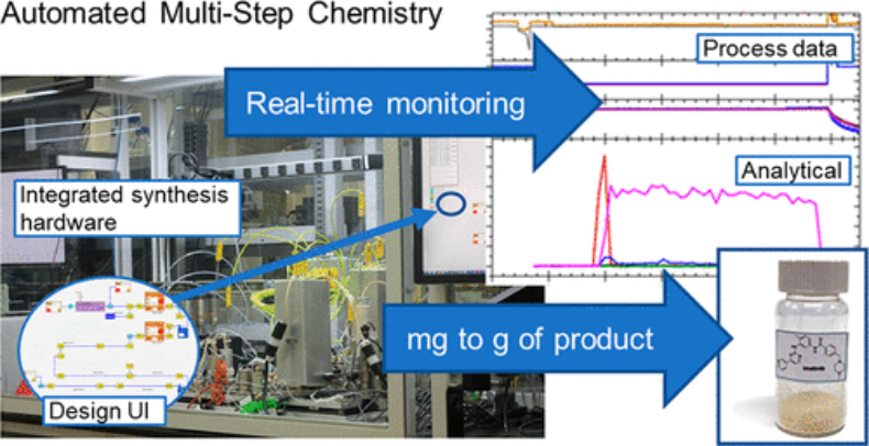今年 6 月,Collins 和他的同事们发表了一篇题为 “Fully Automated Chemical Synthesis: Toward the Universal Synthesizer” 的研究论文,描述了一种自动化多步化学合成仪 AutoSyn 进行药物合成的研究。