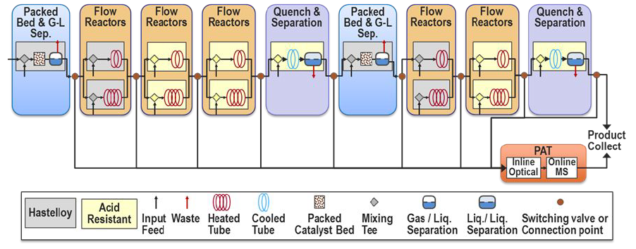 图 | AutoSyn流动化学平台中使用的单元操作模块(UOM)的顺序示意图