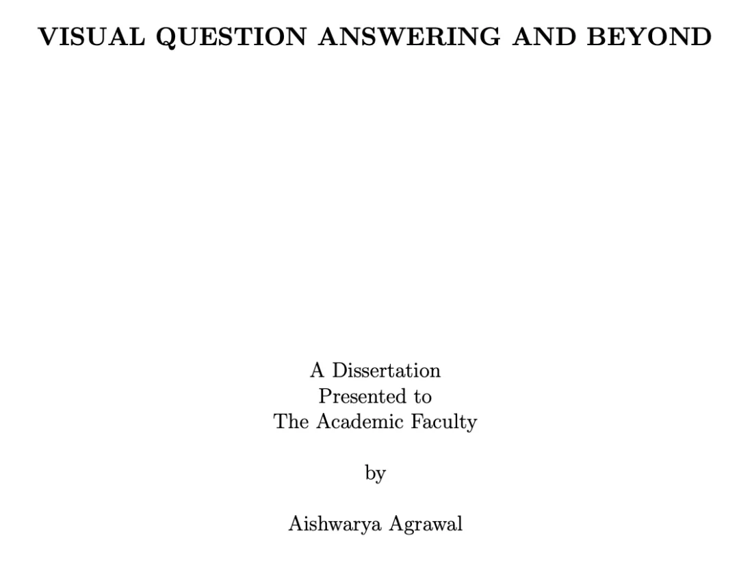 Aishwarya Agrawal 获奖论文: Visual Question Answering and Beyond