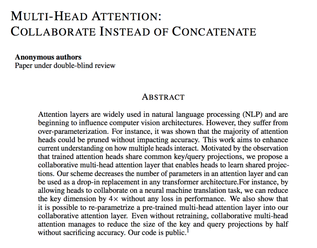 论文标题:Multi-Head Attention: Collaborate Instead of Concatenate