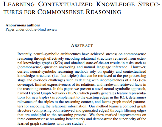 论文标题:Learning Contextualized Knowledge Graph Structures for Commonsense Reasoning