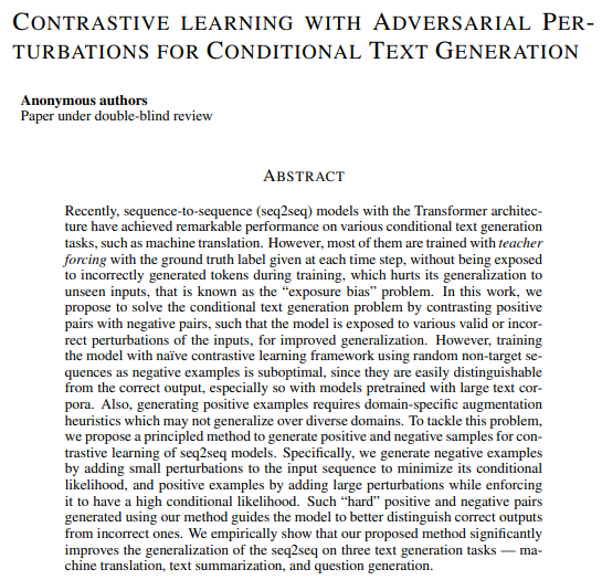 论文标题:Contrastive Learning with Adversarial Perturbations for Conditional Text Generation