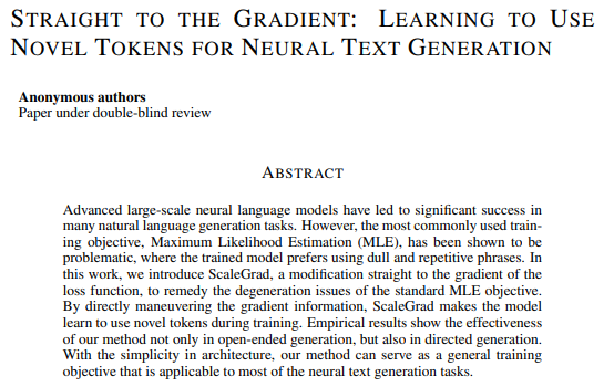论文标题:Straight to the Gradient: Learning to Use Novel Tokens for Neural Text Generation