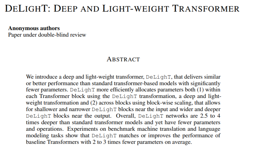 论文标题:DeLighT: Deep and Light-weight Transformer