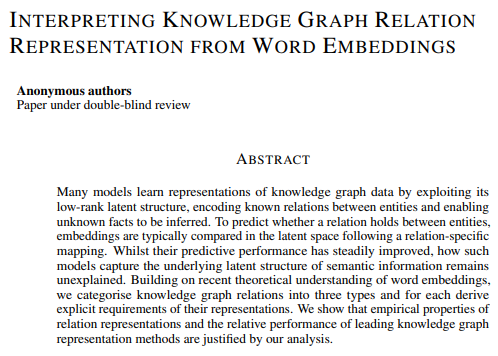 论文标题:Interpreting Knowledge Graph Relation Representation from Word Embeddings