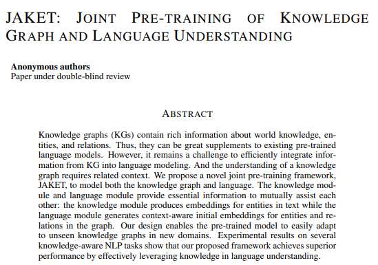论文标题:JAKET: Joint Pre-training of Knowledge Graph and Language Understanding