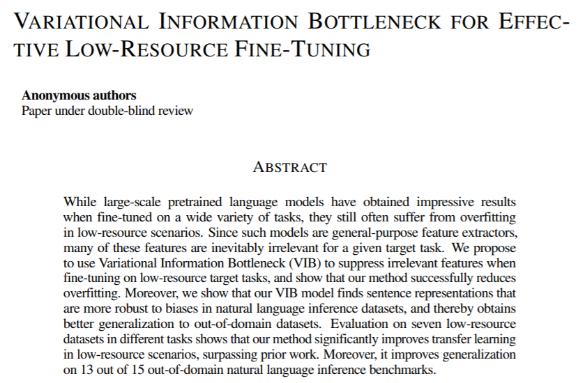 论文标题:Variational Information Bottleneck for Effective Low-Resource Fine-Tuning