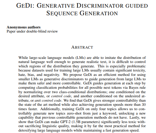 论文标题:GeDi: Generative Discriminator Guided Sequence Generation