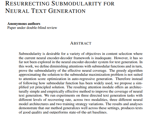 论文标题:Resurrecting Submodularity for Neural Text Generation