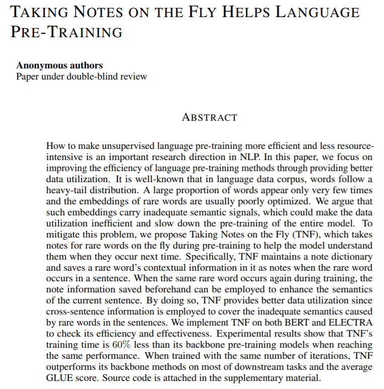 论文标题:Taking Notes on the Fly Helps Language Pre-Training