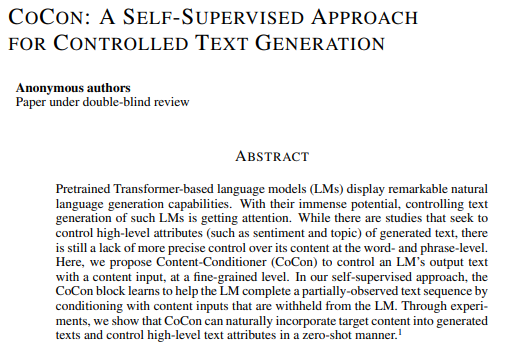 论文标题:CoCon: A Self-Supervised Approach for Controlled Text Generation