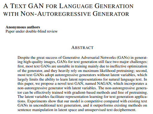 论文标题:A Text GAN for Language Generation with Non-Autoregressive Generator