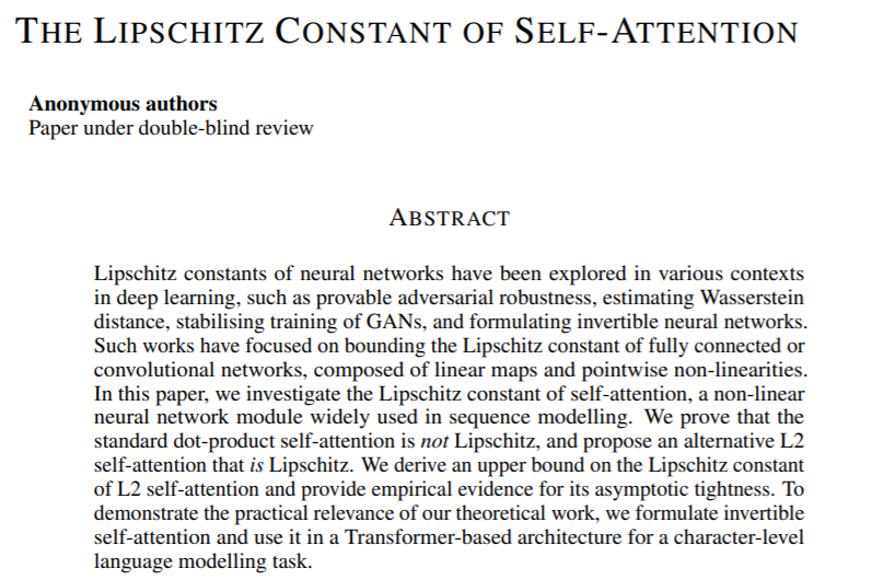 论文摘要:理论研究表明,标准点积的 自注意力 不是Lipschitz,并且提供了基于L2距离的Lipschitz的自我注意的替代表达。