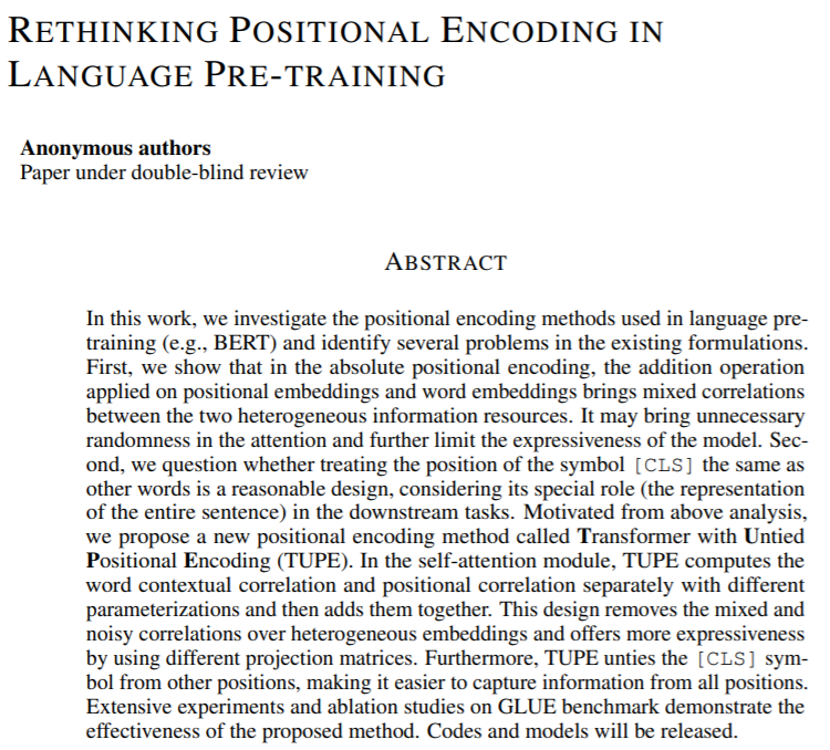 论文标题:Rethinking Positional Encoding in Language Pre-training