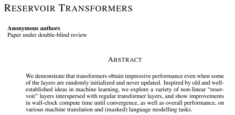 论文摘要:我们证明,即使某些层被随机初始化并且从未更新,Transformer也能获得令人印象深刻的性能。