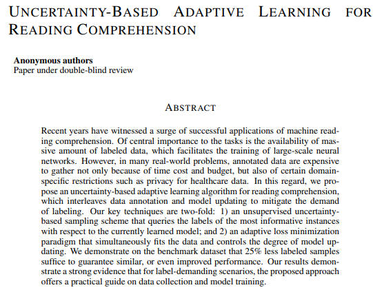 论文标题:Uncertainty-Based Adaptive Learning for Reading Comprehension