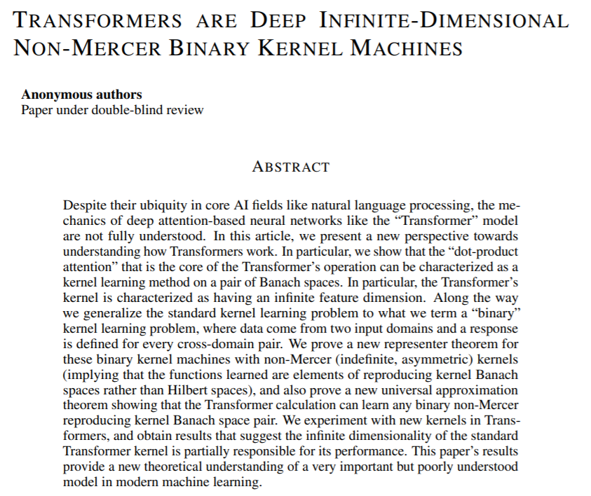 论文标题:Transformers are Deep Infinite-Dimensional Non-Mercer Binary Kernel Machines