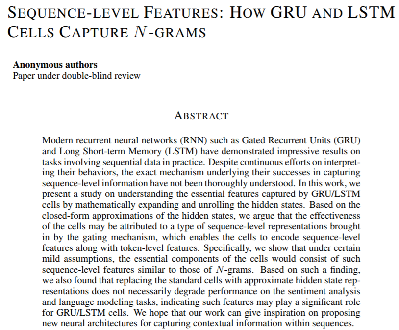 论文标题:Sequence-Level Features: How GRU and LSTM Cells Capture N-grams