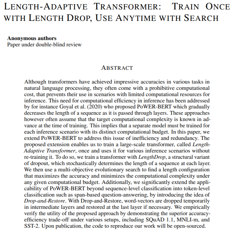 论文标题:Length-Adaptive Transformer: Train Once with Length Drop, Use Anytime with Search