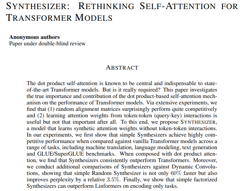 论文标题:Synthesizer: Rethinking Self-Attention for Transformer Models