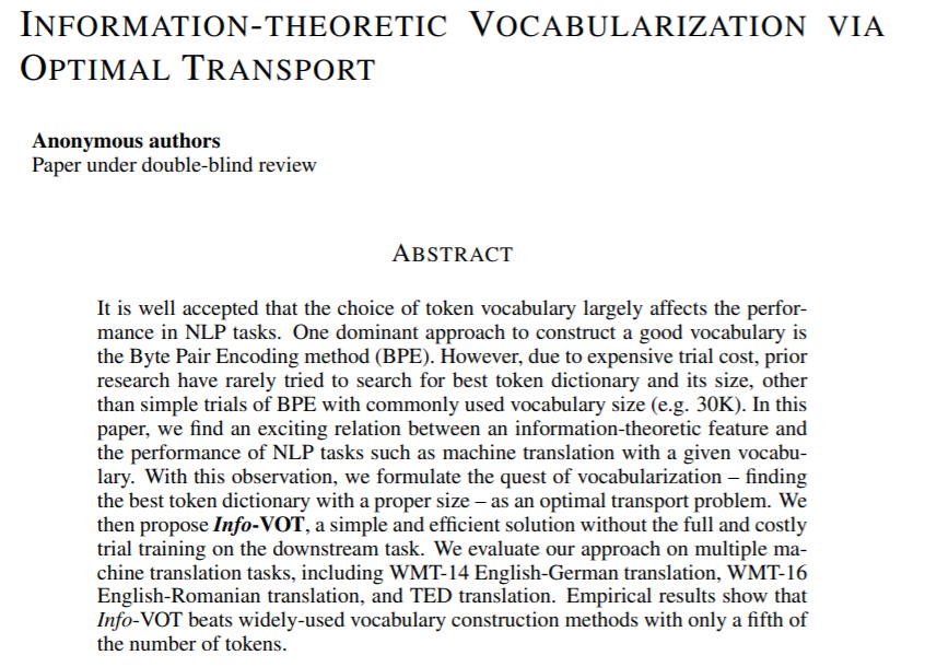 论文标题:Information-theoretic Vocabularization via Optimal Transport