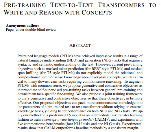 论文标题:Pre-training Text-to-Text Transformers to Write and Reason with Concepts