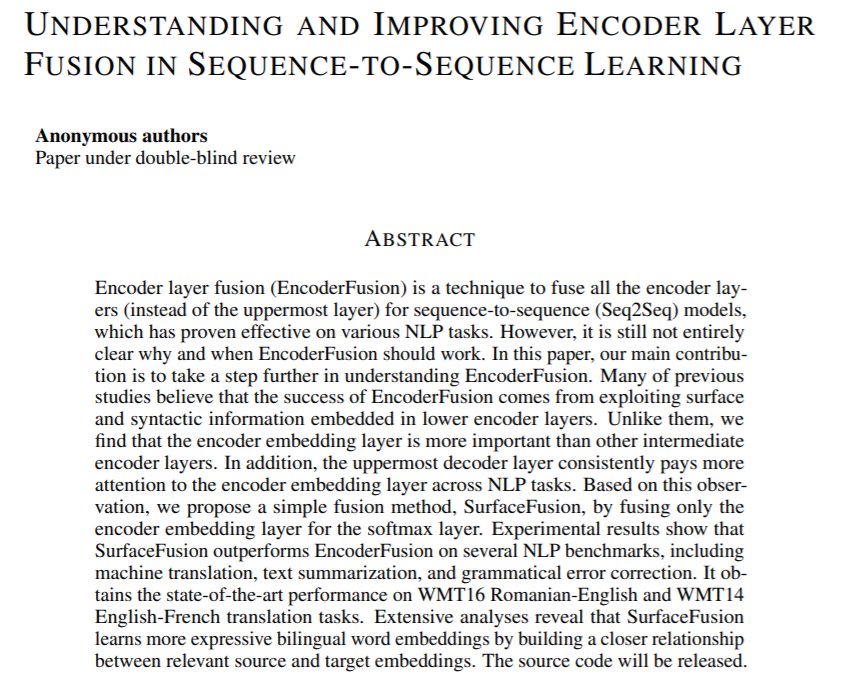 论文标题:Understanding and Improving Encoder Layer Fusion in Sequence-to-Sequence Learning