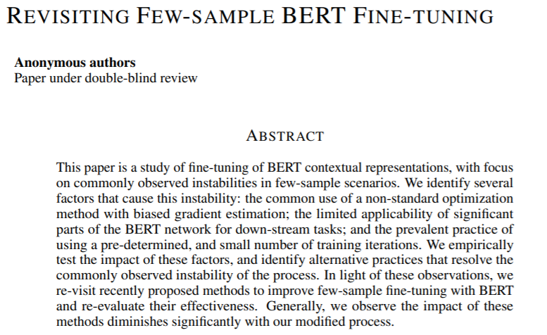 论文标题:Revisiting Few-sample BERT Fine-tuning