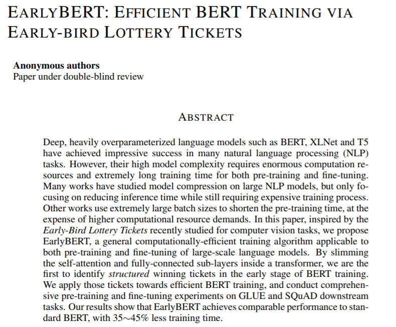 论文标题:EarlyBERT: Efficient BERT Training via Early-bird Lottery Tickets