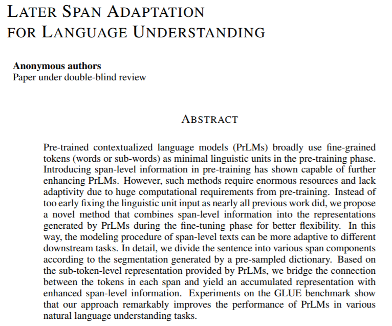论文摘要:我们提出了一种新颖的方法,该方法将跨度信息组合到微调阶段的PrLM生成的表示中,以提供更好的灵活性。这样,跨度级别文本的建模过程可以更适应于不同的下游任务。详细地说,我们根据预采样字典生成的分段将句子分为几个跨度。基于PrLM提供的子令牌级别表示,我们增强了每个跨度中令牌之间的连接,并获得具有增强的跨度级别信息的表示。