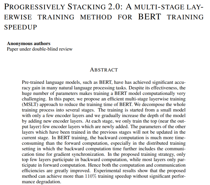 论文标题:Progressively Stacking 2.0: A multi-stage layerwise training method for BERT training speedup