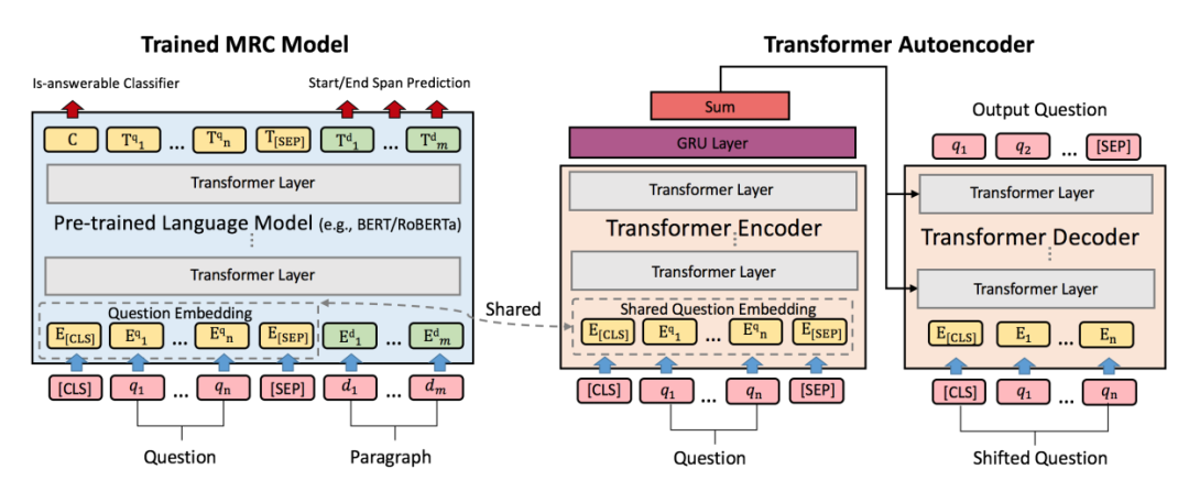 针对机器阅读理解、问句生成、问答 自然语言推理 等任务的问句数据增广,本篇论文将该类问句数据增广任务看作是一个带限制的问句改写任务,即要让改写后的问句与原始文档和答案是相关的,并且希望生成与原始问句接近的不可回答(unanswerable)问句和可回答(answerable)问句。受连续空间修改的可控式改写方法的启发,研究员们提出了基于可控式改写的问句增广方法(Controllable Rewriting based Question Data Augmentation, CRQDA)。