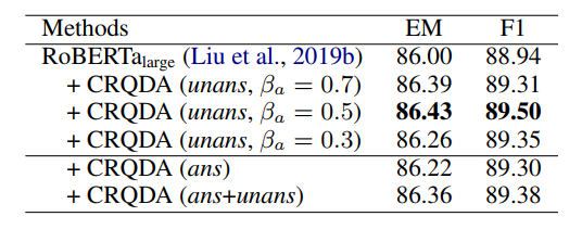 表7:CRQDA 对不同机器阅读理解模型的性能提升
