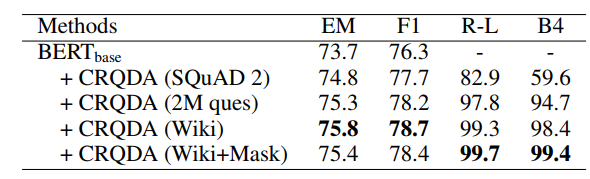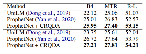 表10:CRQDA 对 SQuAD1.1 问句生成任务的性能提升