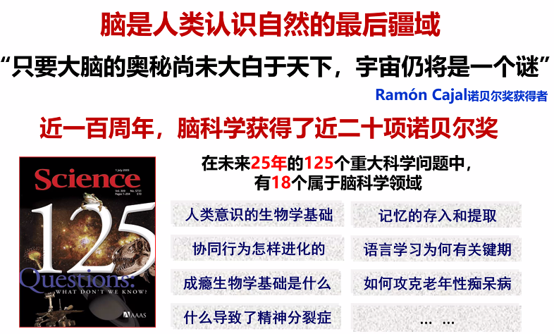 1. 随着先进精密仪器的发展, 人类对脑的理解越来越多,我们似乎到了一个理解脑的关口。