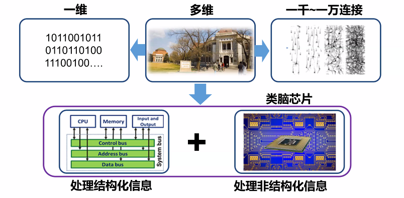 施路平认为,即使我们不知道大脑的基本原理,但我们知道每个 神经元 对外连接数目超过一千,换句话说,是 利用空间复杂度,另外, 对时间编码可引入时空复杂度。基于此, 清华大学 提出通用类脑计算框架,通过增加 类脑芯片 ,以实现计算机架构处理结构化信息, 类脑芯片 处理非结构化信息的任务。这样,即使不了解大脑结构,也可以创造出一个新的计算架架构。