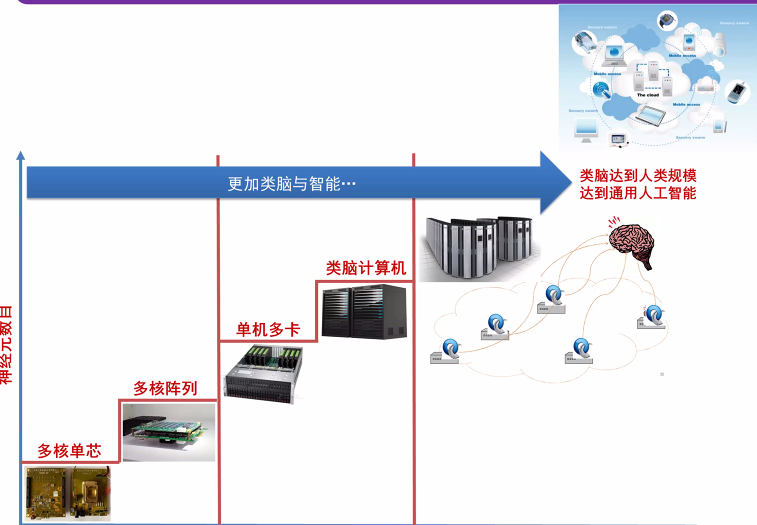 清华大学 类脑研究主要采用“大脑”和“电脑”双脑驱动的发展战略,以计算机为主体,融合脑原理,从理论、芯片、软件、系统、应用五个方面协同发展,发展方向从一个问题一个解决方案发展到一类问题一个解决方案,并逐渐发展到多类问题一个解决方案,同时和应用紧密结合。
