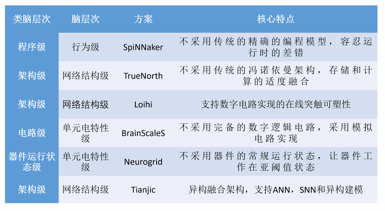 2016年,全球出现了三款类脑计算机,包括美国的TrueNorth、德国的BrainScales,以及英国的SpiNNaker。今年2月, 清华大学 开发设计了中国第一台类脑计算机——天机电子计算机,该研究于 人工智能 杂志发表。8月,浙江大学发布了一款亿级 神经元 类脑计算系统。类脑计算的研究目前没有公认的确定方案,是 IBM 、 惠普 、 英特尔 等的重点研究领域。