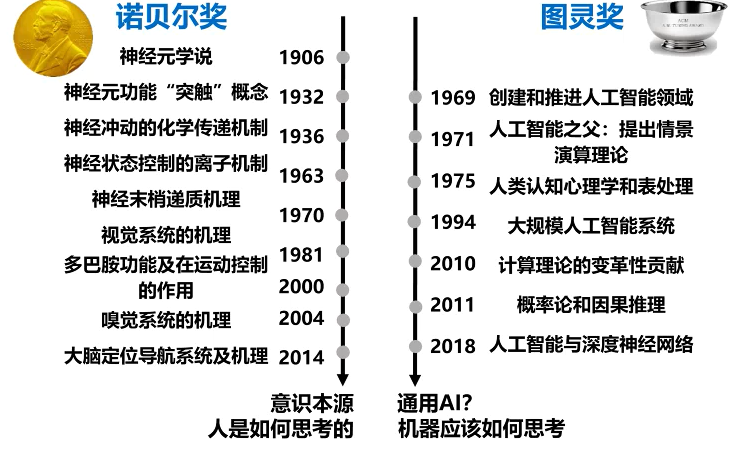 类脑计算可以表示为两种:Brain-Inspired Computing 和 Brain-Like Computing,前一类是从计算机出发,尽可能借鉴脑科学的基本原理来改变计算机,而另一类是尽可能做到像脑,包括其功能和结构上类脑。从诺贝尔奖和图灵奖获奖者的研究来看,大脑和计算机的研究是分别发展的,而目前的研究需要将两者融合起来发展,形成“双脑驱动”的发展模式。
