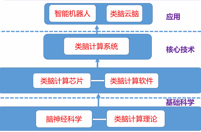 类脑计算的研究涵盖算法、硬件、芯片和系统等不同层面,是美、英、德等国的重点研究领域。从计算机和互联网发展来看,类脑计算的发展需要芯片、软件工具链、 操作系统 和应用的协同发展。施路平认为, 芯片中的信息如何来承载、存储、计算和利用是类脑芯片 的关键,而软件的核心技术问题是软件环境中信息流如何分配、交流、调度 和控制。