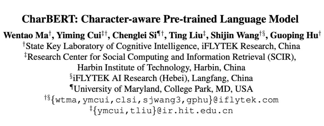 COLING 2020 | CharBERT:字符敏感的预训练语言模型