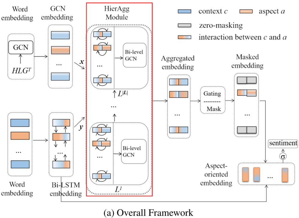 以上述 GCN embedding 和 Bi-LSTM embedding 作为初始句子表示,我们进一步利用 局部 层次词汇图和 层次句法图以获得句子 S 的更好表示。基本思想是让这两个图在经过精心设计的 HierAgg 模块中深入交互。