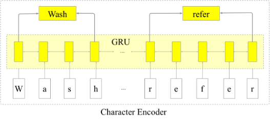 字符编码器的结构如图3所示,主要基于Bi-GRU构建上下文的字符表示。