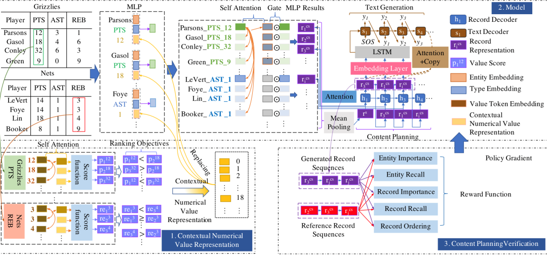 为了解决上面提到的问题,我们提出了数值数据理解和重要信息验证模块以增强模型的内容 规划 能力。3.2和3.3对该方法进行了详细介绍。