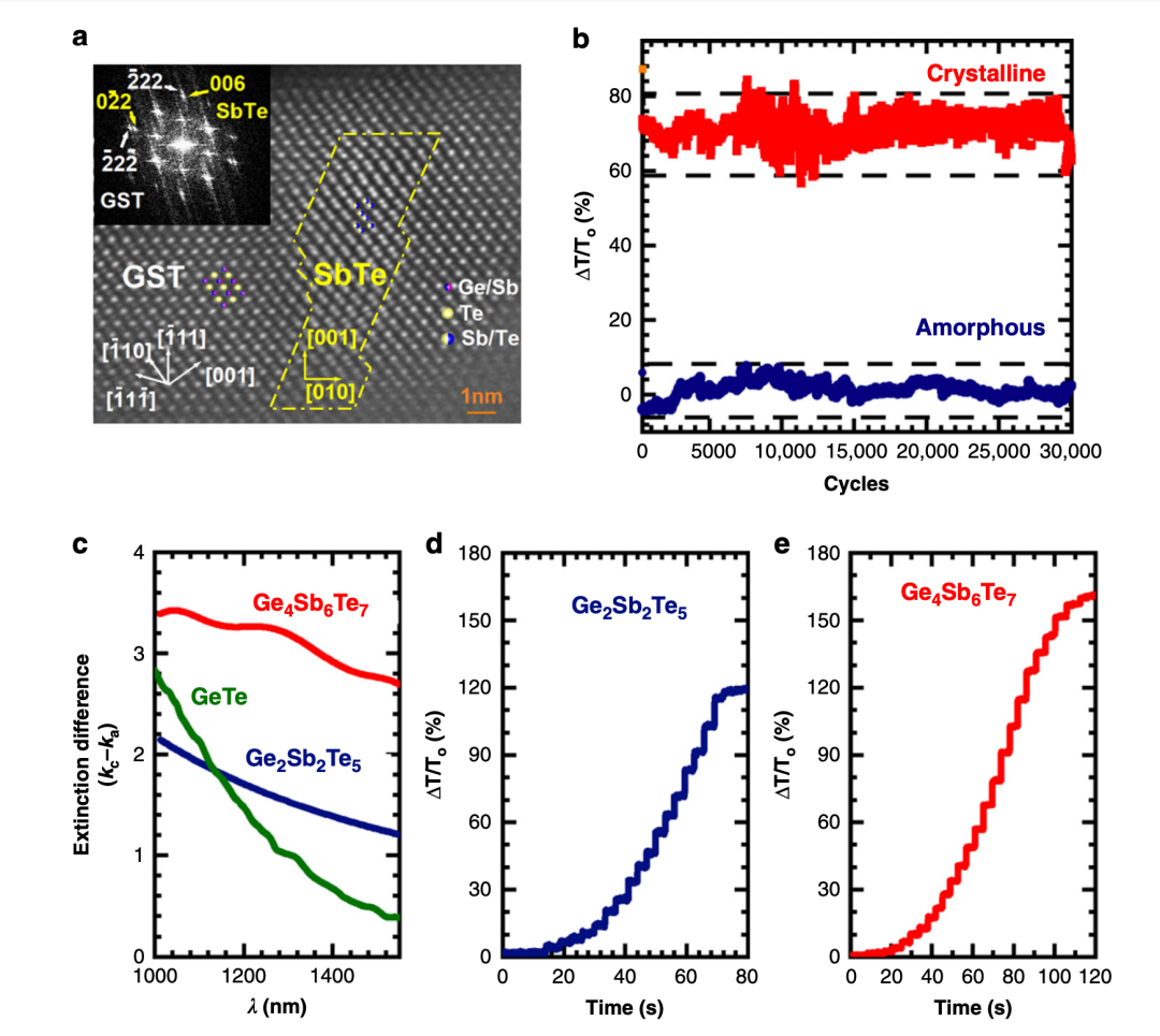 GST467 是适合相变应用的最佳材料。研究人员希望 CAMEO 算法能找到最佳组合的 Ge-Sb-Te 合金,以满足在晶态和非晶态之间的 “光学对比度” 差异最大的特性。例如,在 DVD 或蓝光光盘上,光学对比度允许扫描激光通过区分高反射率或低反射率的区域来读取光盘。研究人员发现,GST467 的光学对比度是 DVD 常用的材料 GST225 的两倍,较大的对比优势也使其表现出了明显优于传统材料的特性。
