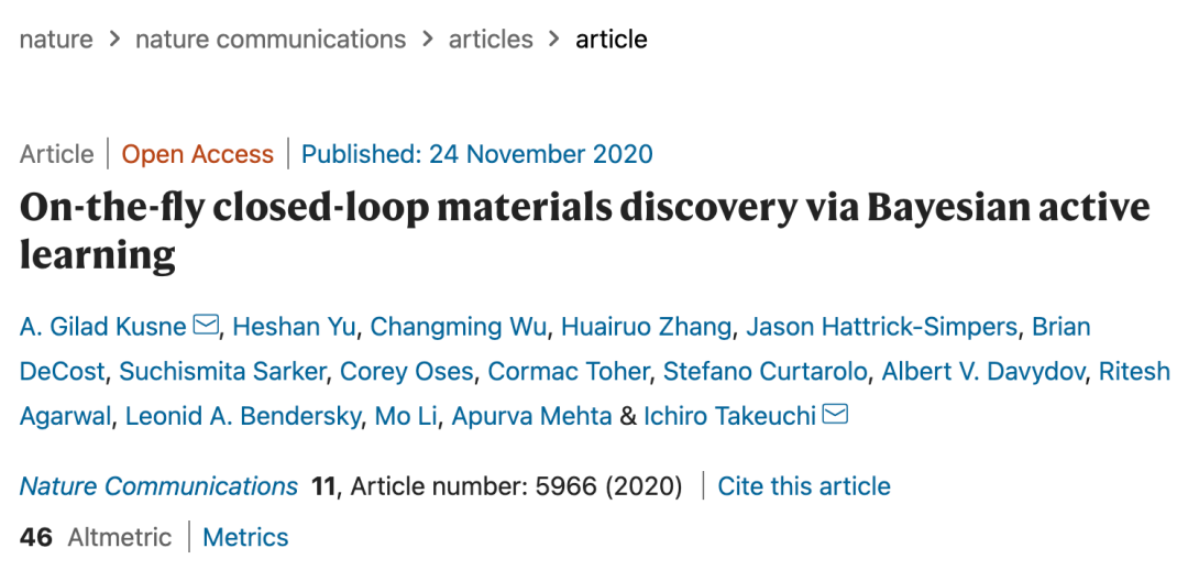 该研究成果以“ On-the-fly closed-loop materials discovery via Bayesian active learning”为题,于 11 月 24 日在线发表在科学期刊《自然-通讯》( Nature Communications)上。